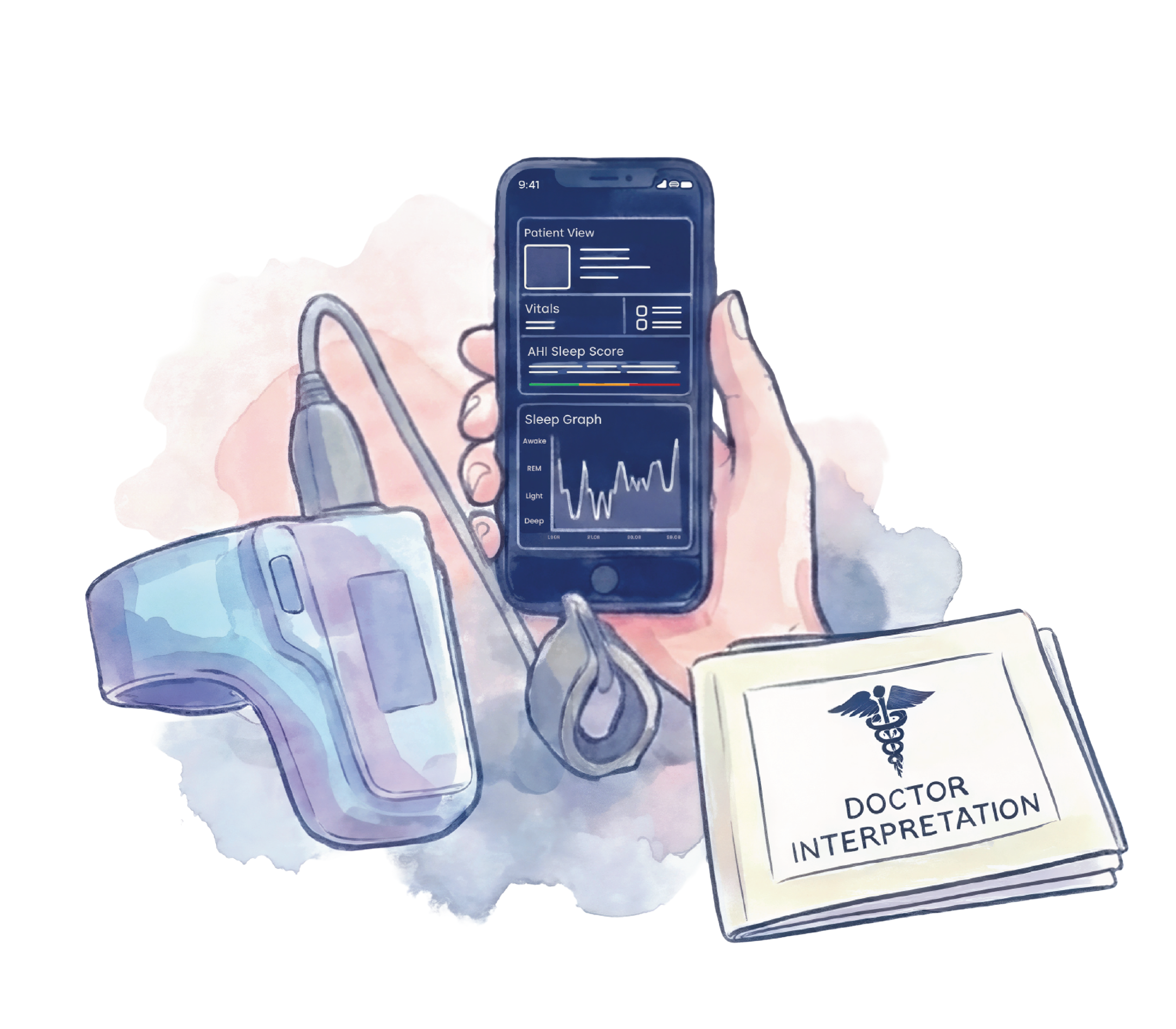 This option provides a detailed sleep report with key metrics such as heart rate, oxygen levels, and sleep stages, all collected from your at-home sleep test. It’s ideal for those who want to share the data with their own doctor for further evaluation and next steps.